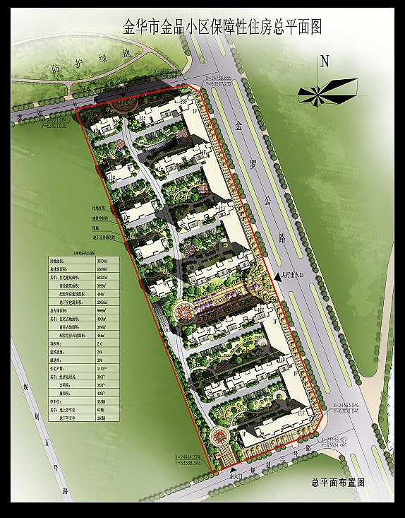 金华市金品小区保障性住房建筑设计项目的地理位置位于金华市金罗路以西,沪昆高速杭金衢路段以南地块。