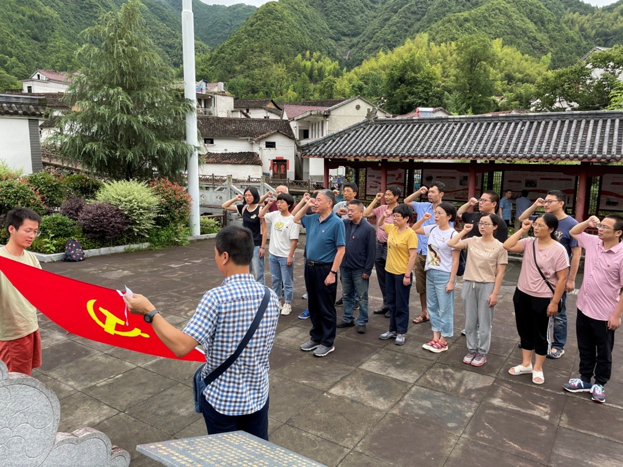 为庆祝中国共产党成立100周年,抓好党史学习教育,6月29日,中共米兰平台_米兰(中国)一站式服务平台党支部和中共金华市勘察设计咨询协会党支部共同赴金华市婺城区沙畈乡银坑村红色教育基地联合开展“重温入党誓词,感悟党的百年奋斗之路”主题党日活动。