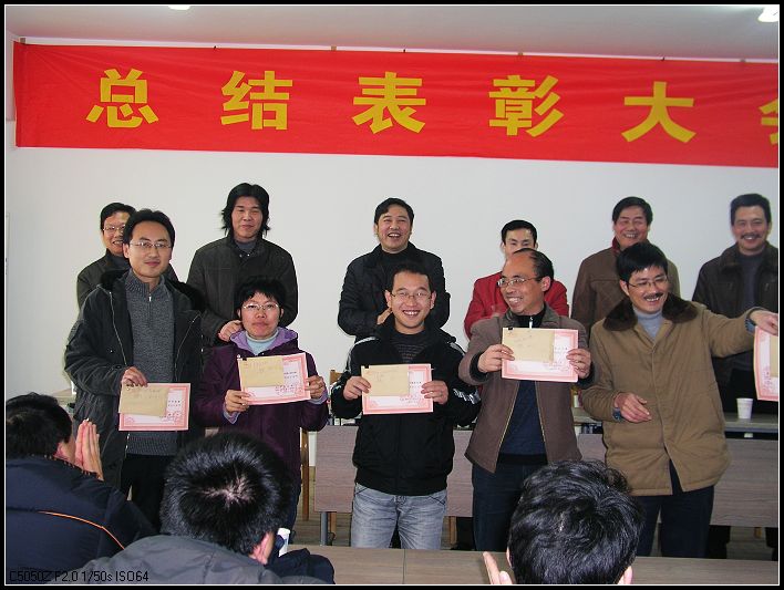 二OO九年二月五日(农历正月初十一),公司举行了隆重的新年开业仪式和总结表彰大会。烟花、炮竹预示着公司二OO九年红红火火、蒸蒸日上;新春抽奖体现公司对每位员工机会平等;聚餐反映了员工和和美美、团团圆圆。在总结表彰大会上,设计院有限公司法定代表人吴学敏、龙源工程咨询有限公司法定代表人章子源、双维招标代理咨询有限公司法定代表人楼希龙作了二OO八年度本单位的主要工作总结和二OO九工作意见。 表彰奖励了赴四川抗震救灾表现突出的章亚清同志,表彰了在四川抗震救灾过渡安置房设计中表现积极的吴冬云、舒永强、宗超群等同志,表彰了浙江省“钱江杯”优秀设计奖,表彰了金华市优秀设计奖,表彰了二OO八年度全勤奖获得者邢小青同志。